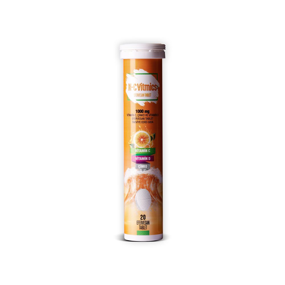 N-C Vitmics 20 Effervesan Tablet, vücudunuzun günlük ihtiyaçlarını karşılamak ve bağışıklık sisteminizi güçlendirmek için formüle edilmiştir. Bu etkili takviye, C vitamini, D vitamini ve çinko içeriği ile sağlığınızı destekler ve genel iyilik halinizi artırır.